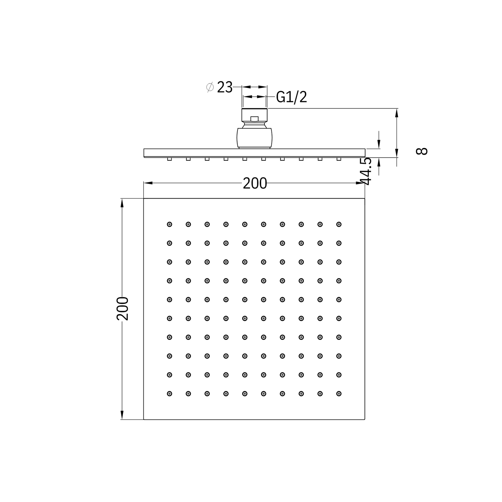200mm Square Shower Head - Chrome