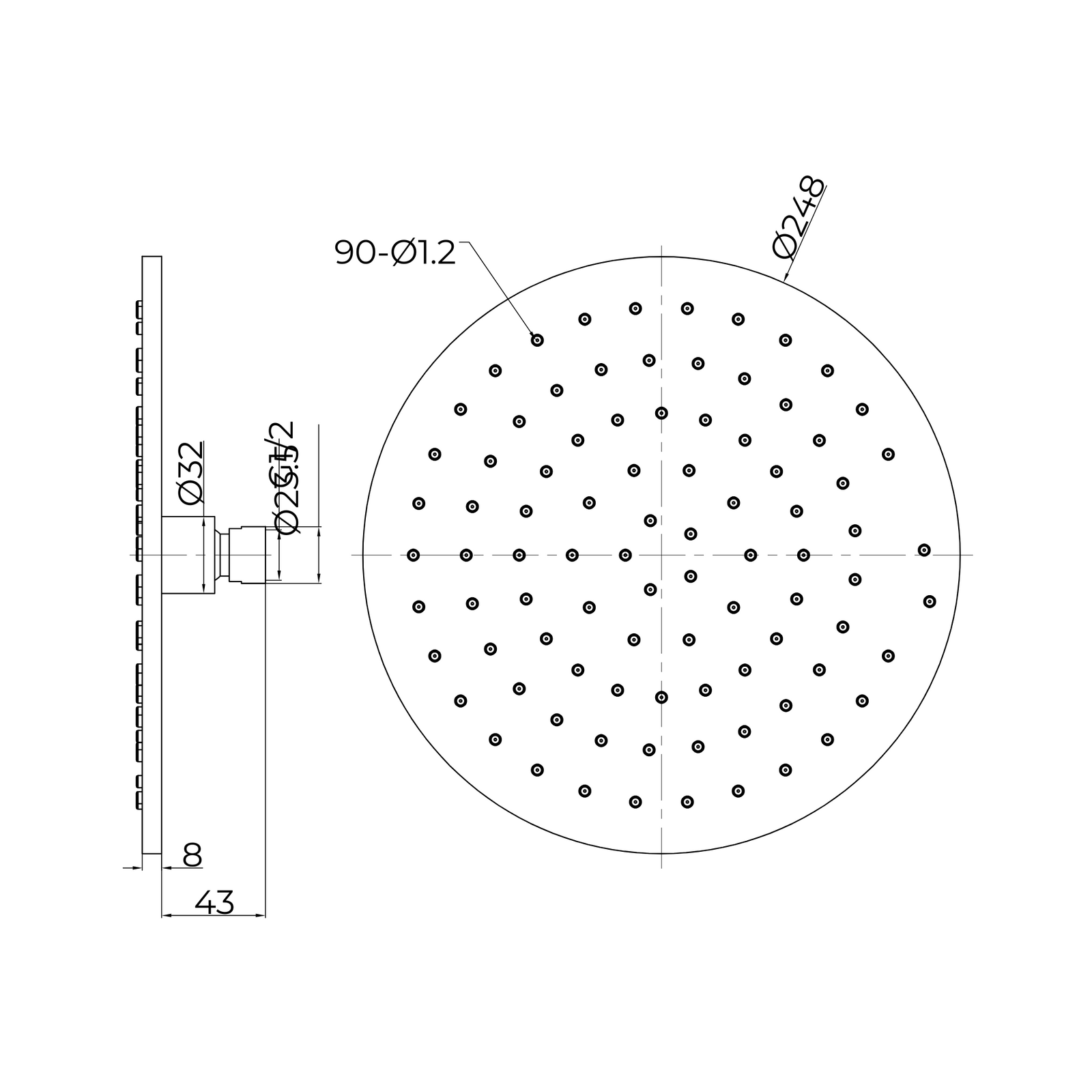 250mm Round Metal Shower Head II - Chrome
