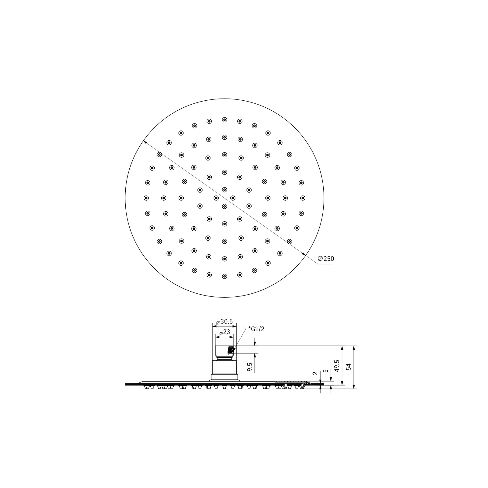 250mm Round Stainless Steel Shower Head 4 Star Rating - Chrome