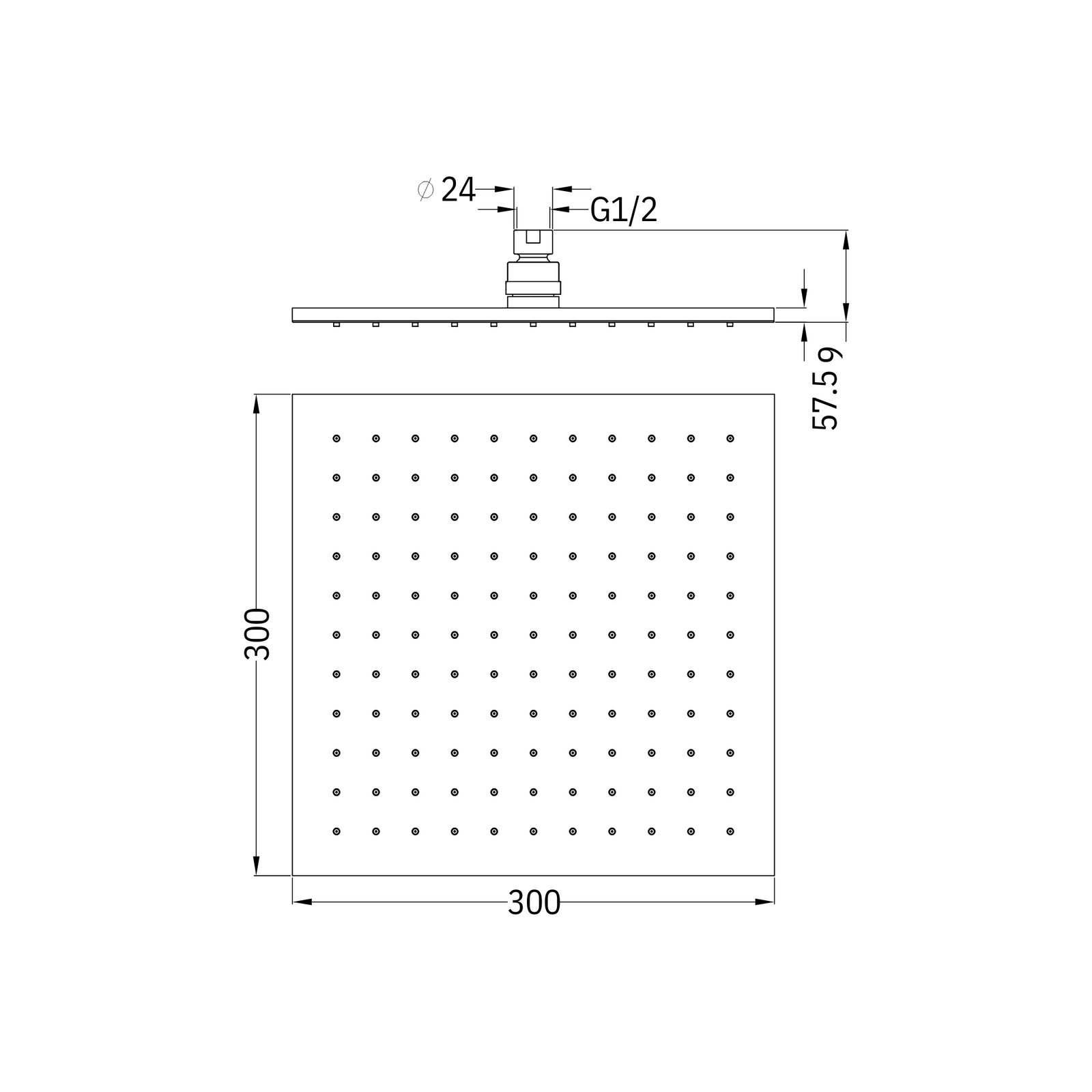 300mm Square Shower Head - Chrome
