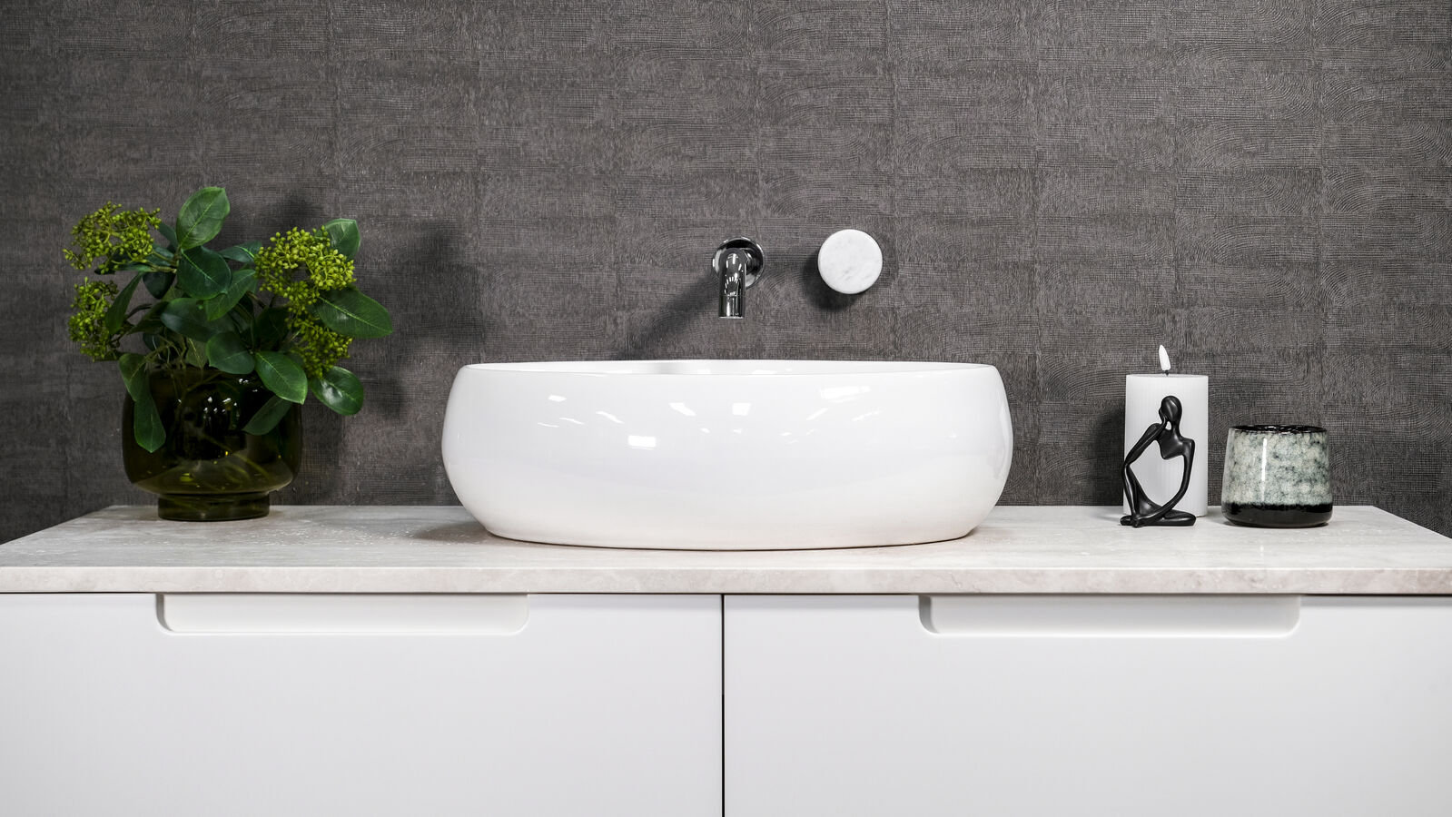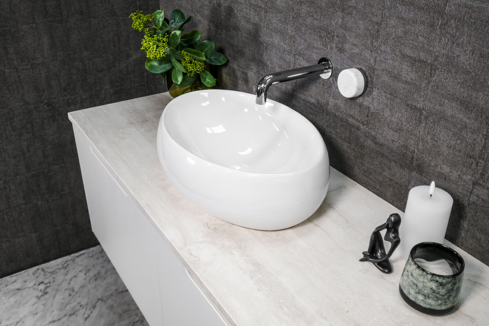 A sleek and modern oval ceramic basin in gloss white, designed for effortless style and everyday functionality.