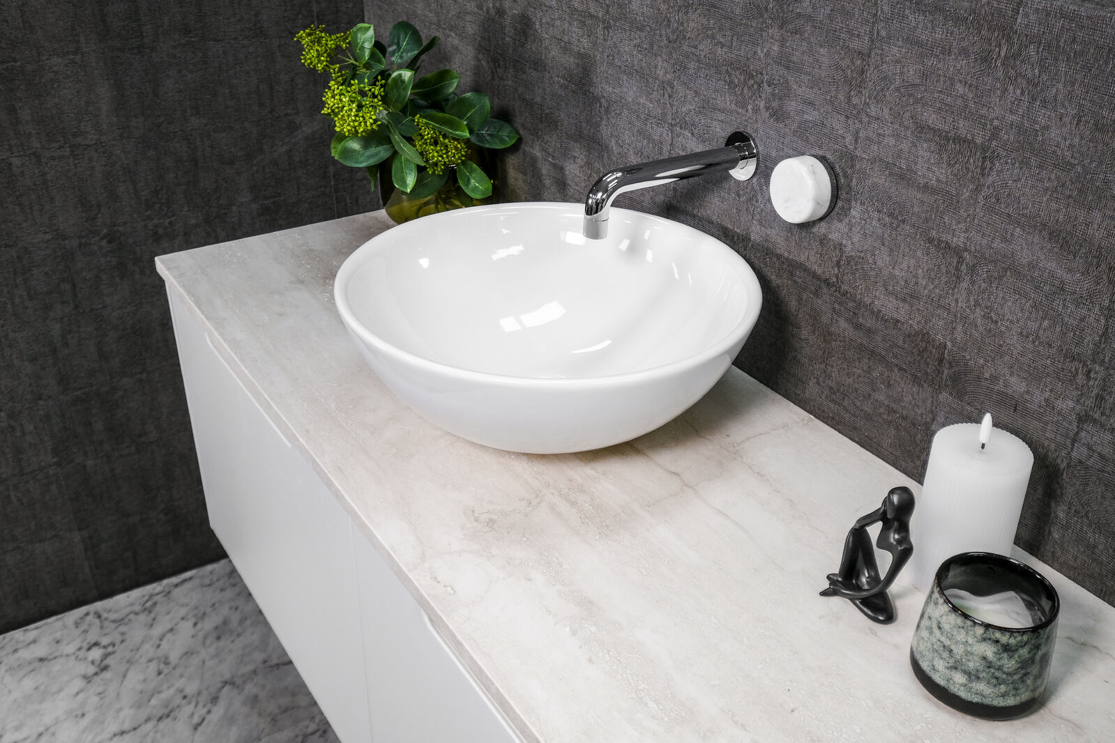 Round Gloss White - Ceramic Above Counter Top Basin RB41 | Pop Up Waste - None