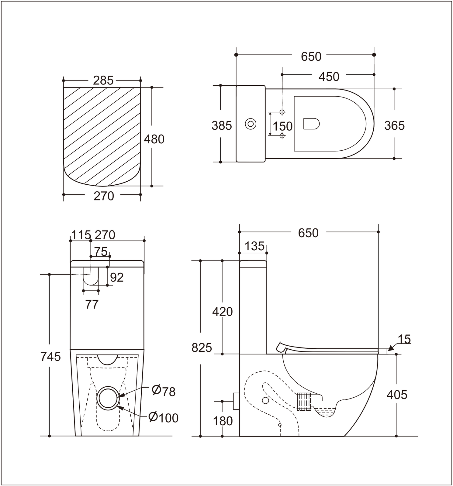 Suitable for P-Trap (180mm) or S-Trap (set-out 70mm to 170mm, on request 170mm to 250mm available).