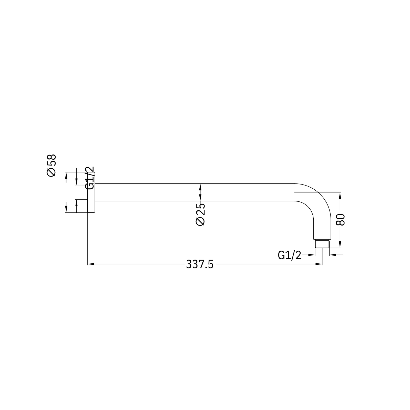 Round Shower Arm 330mm Model G&C - Chrome