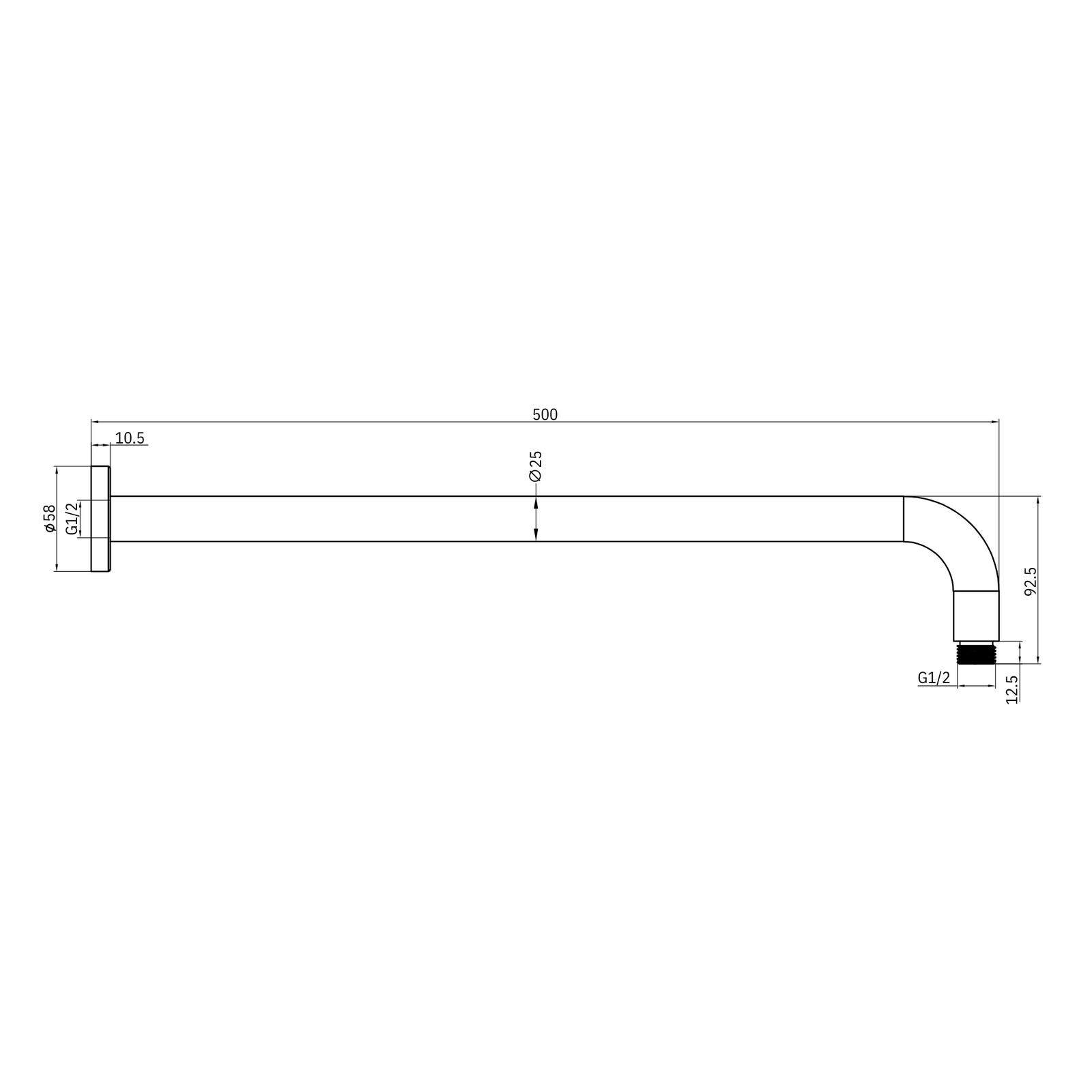Round Shower Arm 500mm Model G&C - Chrome