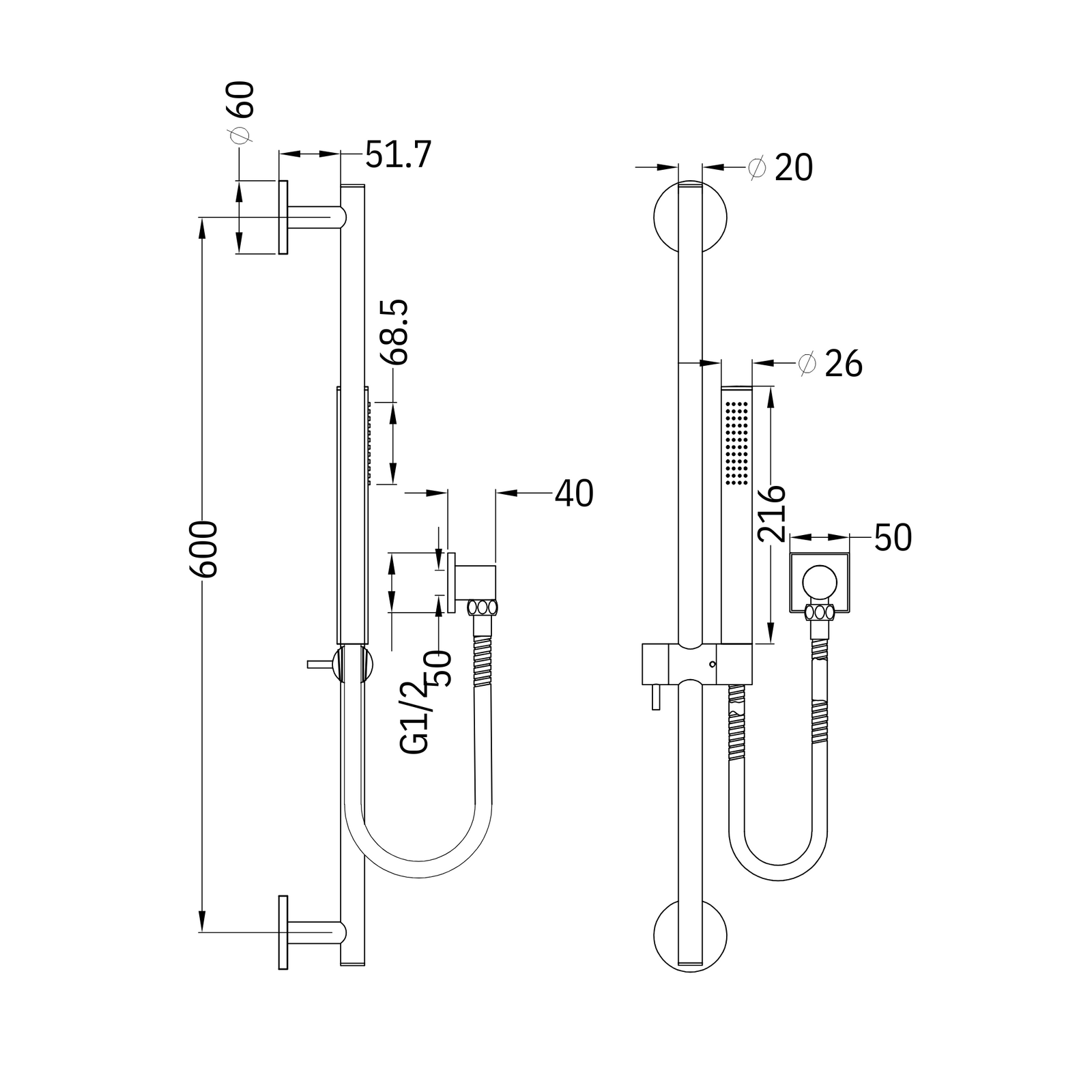 Shower Rail With Slim Hand Shower Model Dolce - Chrome