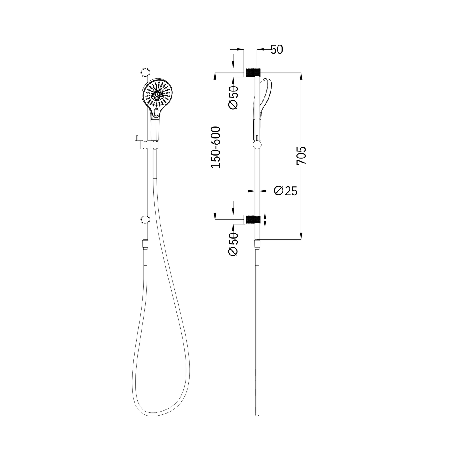 Shower Rail with Opal Shower - Brushed Nickel