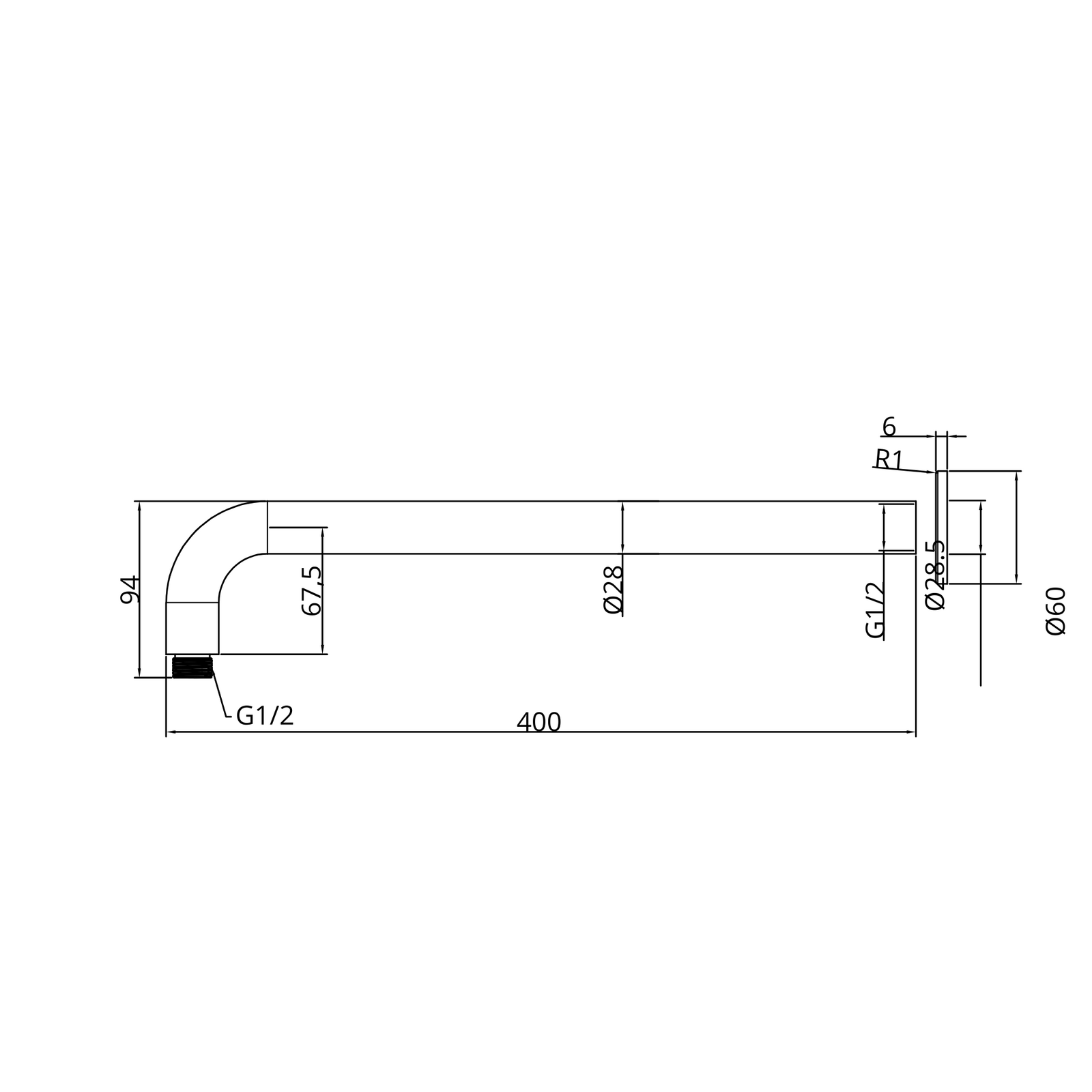 Zen SS316L Round Shower Arm 400mm Model Zen - Brushed Nickel